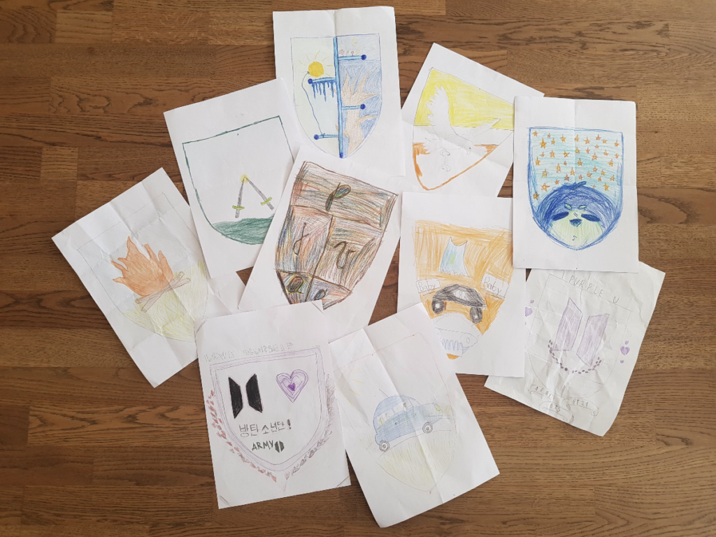 Užsiėmimo pabaigoje, kūrė savo šeimos herbą, pagal heraldikos taisykles.